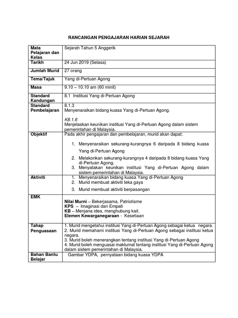 Rph Sejarah Tahun 5 Yang Di Pertuan Agong