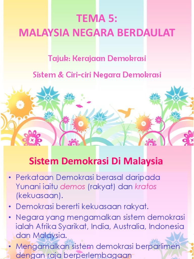 Tema 5 Malaysia Negara Berdaulat Tajuk Kerajaan Demokrasi Sistem Ciri Ciri Negara Demokrasi