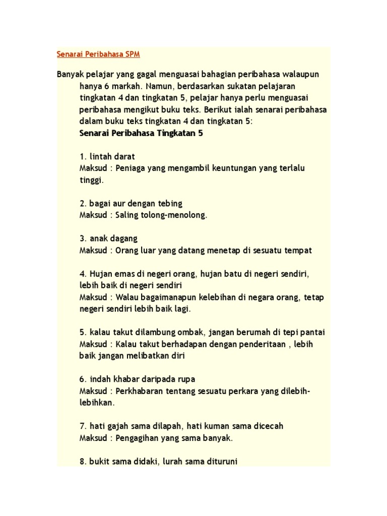 Peribahasa Spm Senarai Peribahasa Untuk Pelajar Sekolah Menengah Tingkatan 1 1 Tempat Jatuh Lagi Dikenang Inikan Pula Tempat Bermain Tempat Berlakunya Course Hero