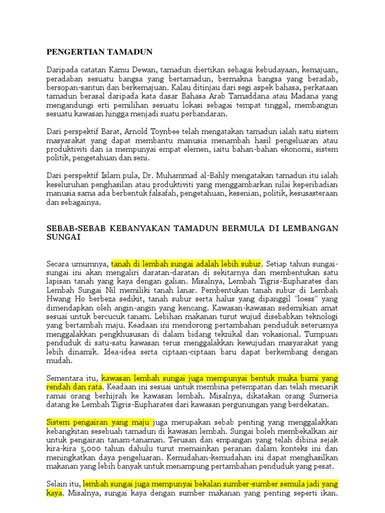 Bincangkan Peranan Sungai Dalam Pembentukan Dan An Tamadun Awal Dengan Memberikan Contoh Docx Document