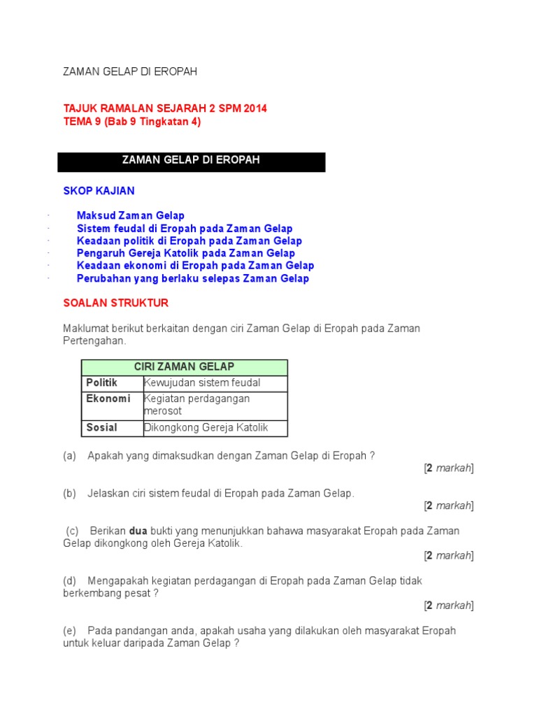 Soalan Zaman Gelap Di Eropah